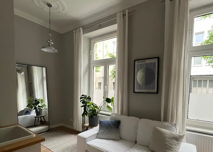 Das 1-Zimmer-Apartment befindet sich im Stadtteil Unterbilk, nicht weit entfernt vom Jan-Wellem-Denkmal entfernt. Es befindet sich in einer Entfernung von 12 Gehminuten vom Heinrich-Heine-Denkmal. Außerdem liegt das Apartment Altbau-Traum im Medienhafen 700 Meter vom Medienhafen.